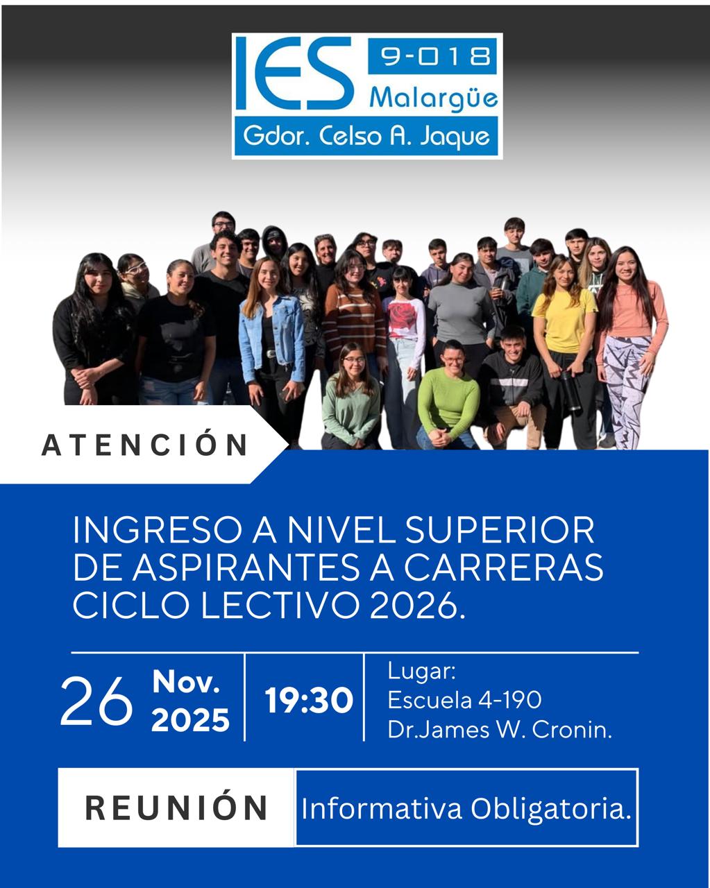 Ingreso a Nivel Superior – Ciclo Lectivo 2026